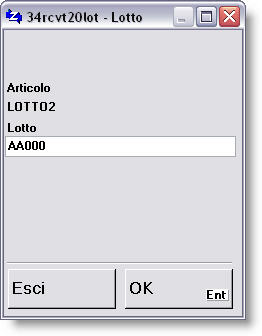 richiede il lotto, viene visualizzata la richiesta del codice lotto. I codici
