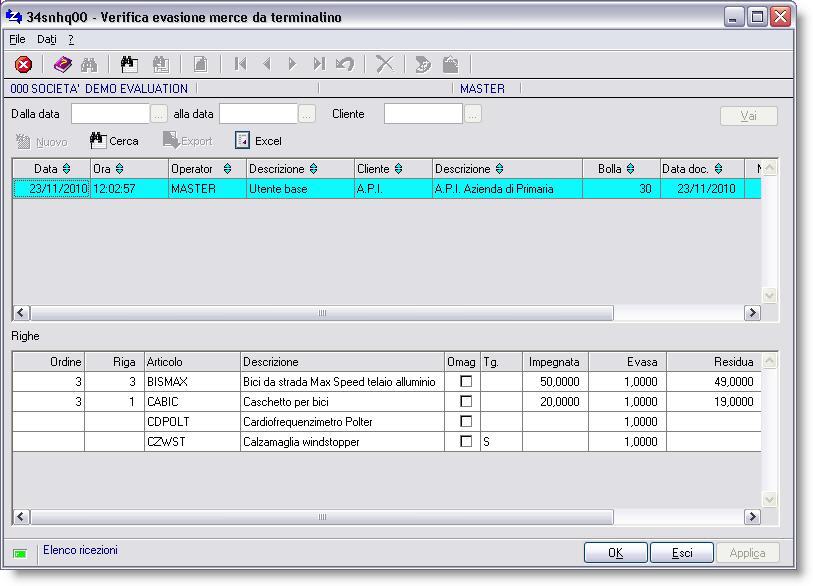 verificare l'evasione merce eseguita coi